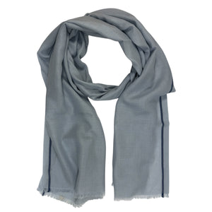 - SALE - Authentic Agnona scarf,light blue with navy edge, lightweight cashmere/ cotton, short eyelash fringe, made in Italy. Authentic Agnona Scarves, women collection scarves and soft accessories at outlet prices.