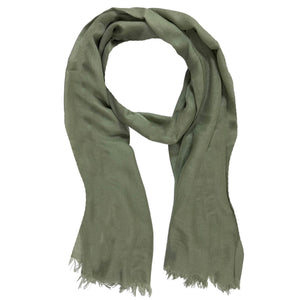 SALE - Women collection - Genuine Brunello Cucinelli scarf, solid moss green, 100% lightweight cashmere/ silk, luxury, short fringe, made in Italy. Authentic Brunello Cucinelli scarves and accessories at outlet prices. Luxury precious natural fibers