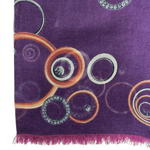 Authentic Chopard scarf, purple bracelets/ jewelry 'Happy Spirit ' design with Chopard logo in center, lightweight cashmere/ silk shawl, short eyelash fringe, made in Italy. Genuine Chopard high-end women accessories, watches and jewelry.