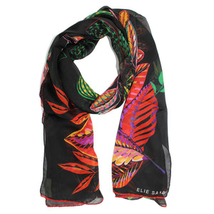 - CLEARANCE - Genuine Elie Saab scarf, black dark red purple orange floral design, light weight silk shawl, hand stitched edges, made in Italy. Genuine Elie Saab collection, discount women designer scarves, luxury fashion at outlet prices.