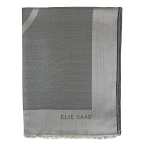 Elie Saab Scarf Gray Logo Design - Twill Silk Designer Shawl