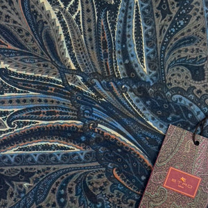 Etro Scarf Gray Blue Ornamental Design - Extra Large Square Shawl
