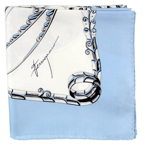Category: 200-300, blue, large square, salvatore ferragamo, scarf, silk, square, twill, woman