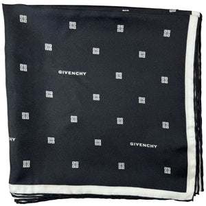 Category: 200-300, black, Givenchy, large square, scarf, shawl, signature, silk, square, twill, woman