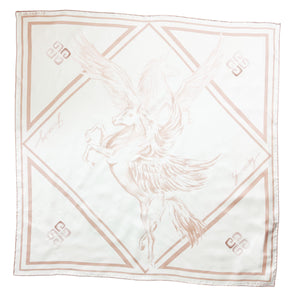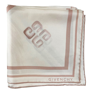 - SALE - Genuine Givenchy scarf, silk, white dust pink logo/ Pegasus design, made in Italy. Authentic Givenchy collection online, designer scarves/ shawls at outlet prices.