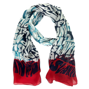 - SALE - Genuine Lanvin scarf, red navy white and ocean green logo island (waves and palm) design, lightweight silk, made in Italy. Authentic Lanvin scarves, women collection, luxury fashion accessories at outlet prices.