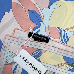 Authentic Leonard Paris scarf, blue pink floral design, twill silk, hand stitched borders, made in Italy. Genuine Leonard Paris women scarves, stunning colors, top quality silks.