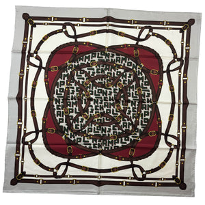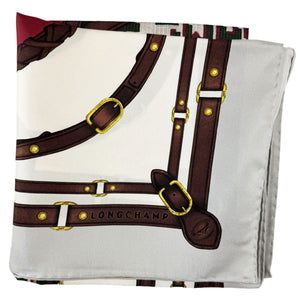 Longchamp Paris Scarf Gray Equestrian Design - Silk Square Foulard