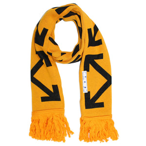 WAREHOUSE SALE: Luxury Off-White  scarf, orange black arrow logo design, soft wool blend, fringe, unisex collection, made in Italy. Comes with original tags.