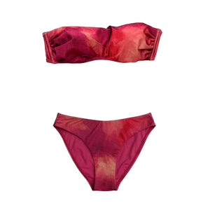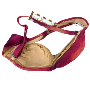 Hand Made In Italy: Genuine Olivia Gold, bikini - top with strap, bottom with side strap, shiny fuchsia pink pattern, luxury women swimsuit/ beachwear for women, top quality, hand made in Italy. Shop luxury bikinis, swimwear and beachwear for women, Olivia Beachwear, at outlet prices.