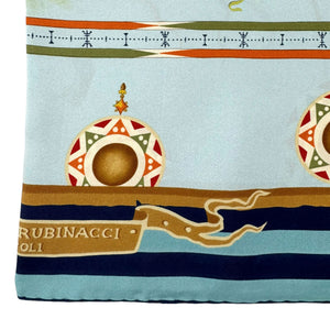 Women collection: Genuine Rubinacci scarf, unique blue design, large 36" square silk scarf, made in Italy. Shop for genuine discount women designer scarves online, luxury Italian women scarves.