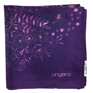Authentic Ungaro scarf, purple design, women collection, light twill silk fabrics, made in Italy. Genuine Ungaro women collection online, discount women designer scarves/ shawls at outlet prices.