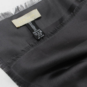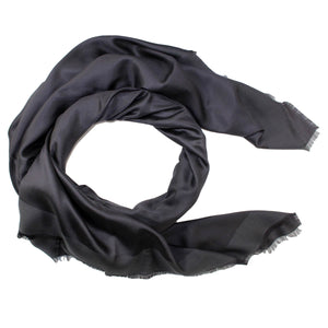 - SALE - Genuine Elie Saab scarf, dark gray tonal design with center logo, luxury wool, extra large square scarf, short eyelash fringe, made in Italy. Genuine Elie Saab collection, elegant large shawl, excellent for evening wear. Discount women designer scarves at outlet prices.