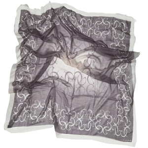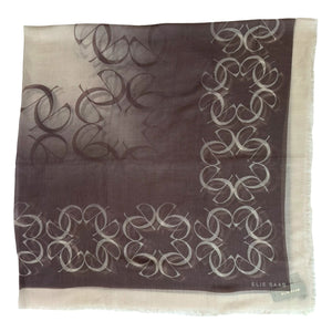 - SALE - Authentic Elie Saab scarf, taupe-brown gray signature logo initials design, lightweight very soft wool blend, extra large 55" square, made in Italy, short eyelash fringe. Genuine Elie Saab collection, discount women designer scarves/ stola and shawls