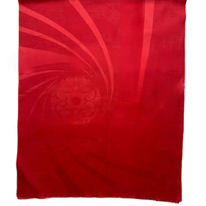 - SALE - Authentic Elie Saab scarf, red tonal logo and swirl design, wool silk, short eyelash fringe, made in Italy. Genuine Elie Saab collection, discount women designer scarves/ stola and shawls