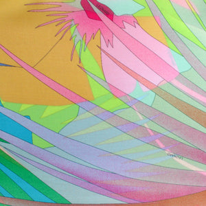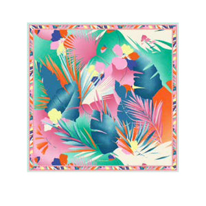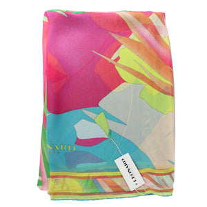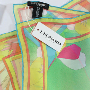 SALE - Authentic Leonard scarf, colorful yellow/ blue/ fuchsia/ green floral/ tropical leafs 'Forest' design, extra large square, chiffon silk, hand rolled borders, made in Italy. Genuine Leonard Paris scarf, stunning colors, women collection.