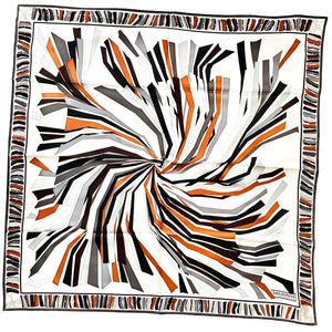 Authentic Emilio Pucci scarf, white black gray brown design, twill silk, large 36"/ 90cm square foulard, hand rolled borders, made in Italy. Genuine Emilio Pucci soft accessories at outlet prices.
