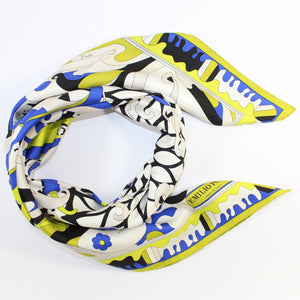 Category: emilio pucci, large square, lime, ornamental, Royal Blue, scarf, signature, silk, square, twill, woman, yellow