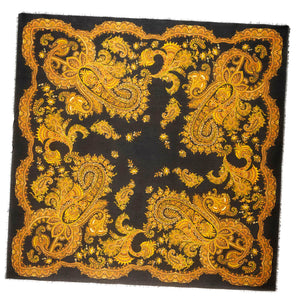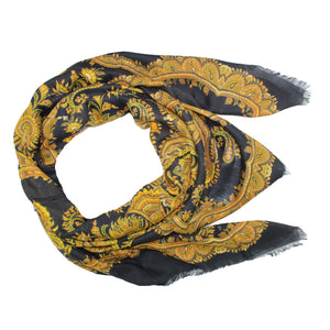 SALE - Genuine Etro scarf, black placed paisley design, soft cashmere blend, extra large 54" square, short eyelash fringe, made in Italy. Authentic Etro women collection at outlet prices.