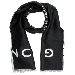- SALE - Genuine Givenchy scarf, black white logo with '3 AV GEORGE V' design, soft wool/ silk, made in Italy. Authentic Givenchy collection online, unisex scarves/ shawls at outlet prices.