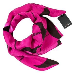 Category: 200-300, 2024summer, brown, dark brown, floral, fuchsia, hot pink, kiton, large square, magenta, scarf, silk, square, twill, woman