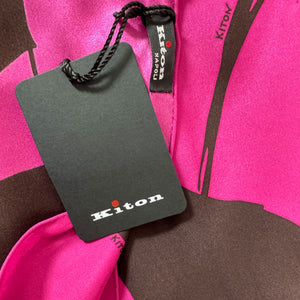 Women collection: Genuine Kiton scarf, twill silk magenta brown floral leaves print, hand stitched borders, made in Italy. Authentic Kiton women accessories and scarves, top quality at outlet prices.