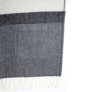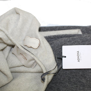 Luxury Cashmere: Authentic Agnona cape with fringe and (thin) leather trim, gray/ charcoal gray and white two patch front pockets, luxury cashmere, made in Italy. Authentic Agnona Scarves, women collection capes, scarves and soft accessories at outlet prices.