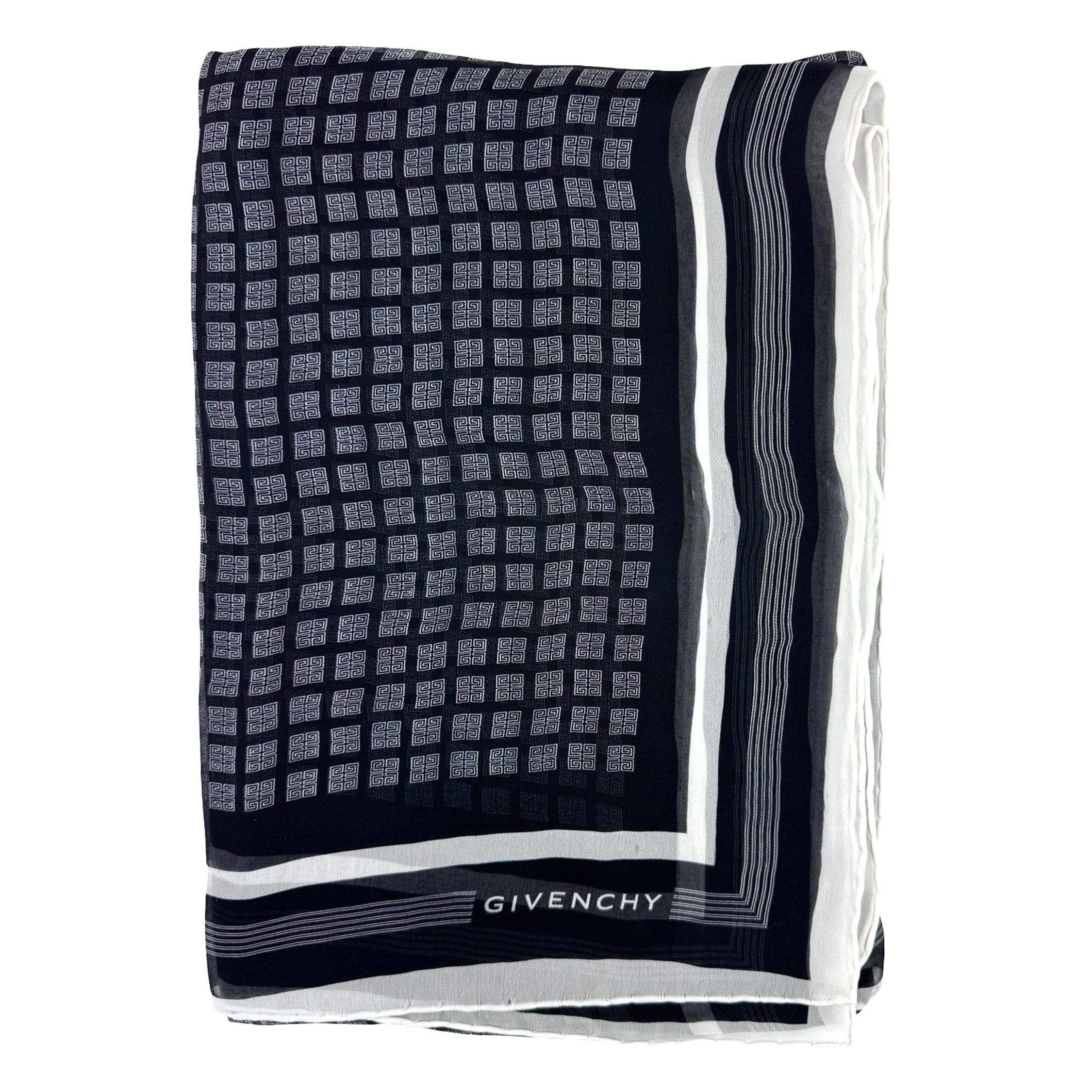 Women collection: Genuine Givenchy scarf with signature black white tonal 4G logo design, light weight chiffon silk, no fringe, hand stitched edges, made in Italy. Authentic Givenchy women collection online at outlet prices.
