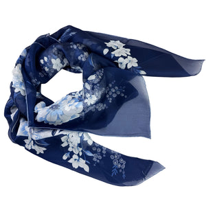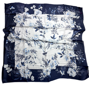 Authentic Leonard scarf, white dark blue floral design, extra large square 55" x 55" chiffon silk, hand rolled borders, made in Italy. Genuine Leonard Paris scarf, colorful floral designs, women collection.
