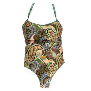 Hand Made In Italy: Genuine Olivia Gold, stunning paisley design, luxury women swimsuit/ beachwear for women, top quality, hand made in Italy. Shop luxury bikinis, swimwear and beachwear for women, Olivia Beachwear, at outlet prices.