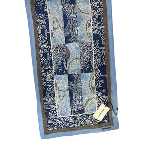 Genuine Borbonese scarf, navy blue oversized paisley floral with signature Eye of Partridge detail and blue edge design, light weight silk, no fringe, made in Italy. Authentic Borbonese women designer scarves, Italian quality accessories at outlet prices.