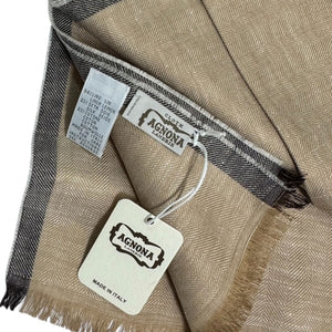 SALE - Authentic Agnona scarf, beige design, lightweight linen/ cotton/ silk blend, short eyelash fringe, made in Italy. Authentic Agnona Scarves, women collection scarves and soft accessories at outlet prices. Huge deal.