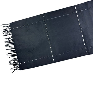 Agnona Scarf Black With Leather Stitch Detail - Cashmere Cotton Fringe Shawl