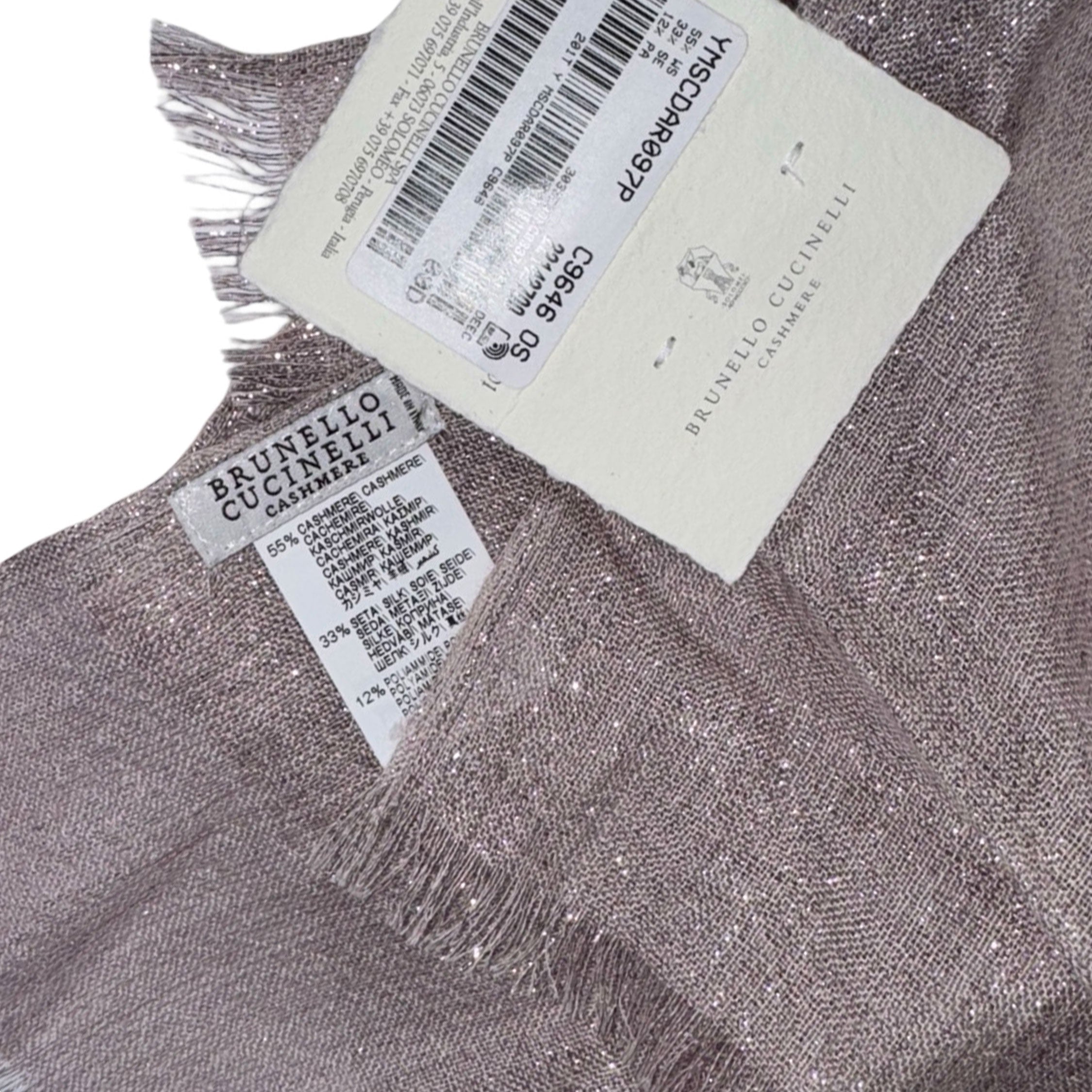 Women collection - Genuine Brunello Cucinelli scarf, light pink/ silver glitter, lightweight cashmere/ silk, luxury, short eyelash fringe, made in Italy. Authentic Brunello Cucinelli scarves and accessories at outlet prices. Luxury precious natural fibers.