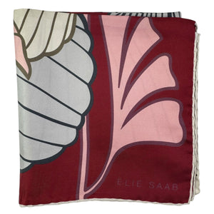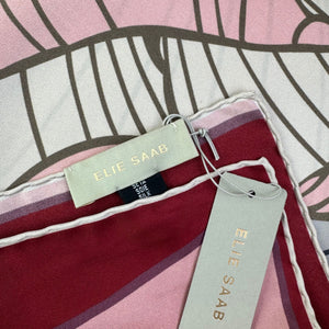 Luxury: Authentic Elie Saab scarf, Bordeaux Pink Gray design, twill silk, no fringe, hand stitched borders, made in Italy. Genuine Elie Saab collection, discount women designer scarves/ wraps and shawls.