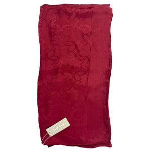Luxury: Authentic Elie Saab scarf, bordeaux tonal signature logo design, twill silk, no fringe, hand stitched borders, made in Italy. Genuine Elie Saab collection, discount women designer scarves and shawls.