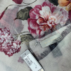 Elie Saab Scarf Gray Floral Design - Extra Large Wool Shawl