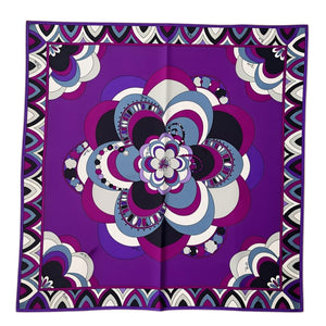 Category: 100-150, 2026summer, emilio pucci, purple, scarf, signature, silk, small square, square, woman