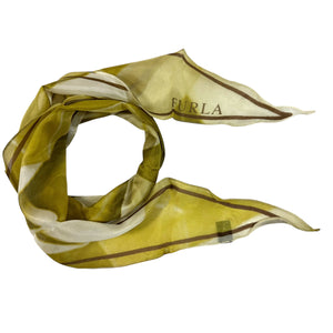Genuine Furla scarf, diamonds shape, olive design, light weight twill silk, made in Italy. Authentic Furla women designer scarves, Italian quality accessories at outlet prices.