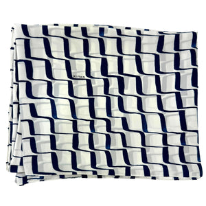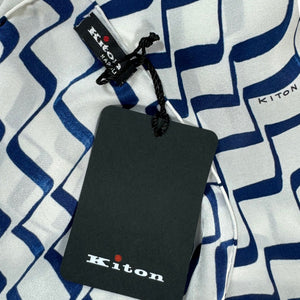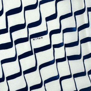 SALE - Women collection: Genuine Kiton scarf, twill silk white/ navy design, hand stitched borders, made in Italy. Authentic Kiton women accessories and scarves at outlet prices.