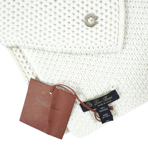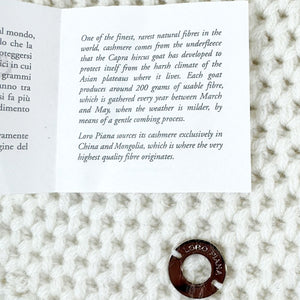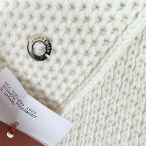 Genuine Loro Piana scarf, white solid 'Sciarpa Rougemont' design, fancy medium-heavy weight cashmere, Loro Piana silvertone logo, made in Italy. Genuine Loro Piana women collection, exclusive luxury Loro Piana scarves at outlet prices.