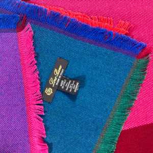 - SALE - Genuine Loro Piana square scarf, multi-color color block 'Quadrilatero del Silenzio' design, fancy medium weight cashmere/ silk, short eyelash fringe, made in Italy. Genuine Loro Piana women collection, exclusive luxury Loro Piana scarves at outlet prices.