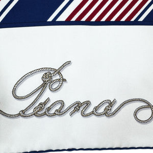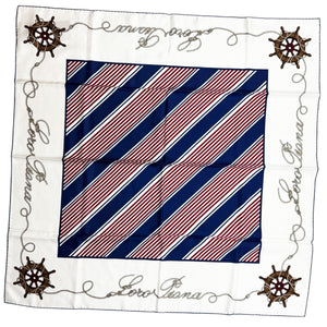 Luxury: Authentic Loro Piana scarf, white navy maroon nautical sailor design, fancy twill silk, hand stitched edges, made in Italy. Genuine Loro Piana women collection, exclusive luxury Loro Piana scarves at outlet prices.