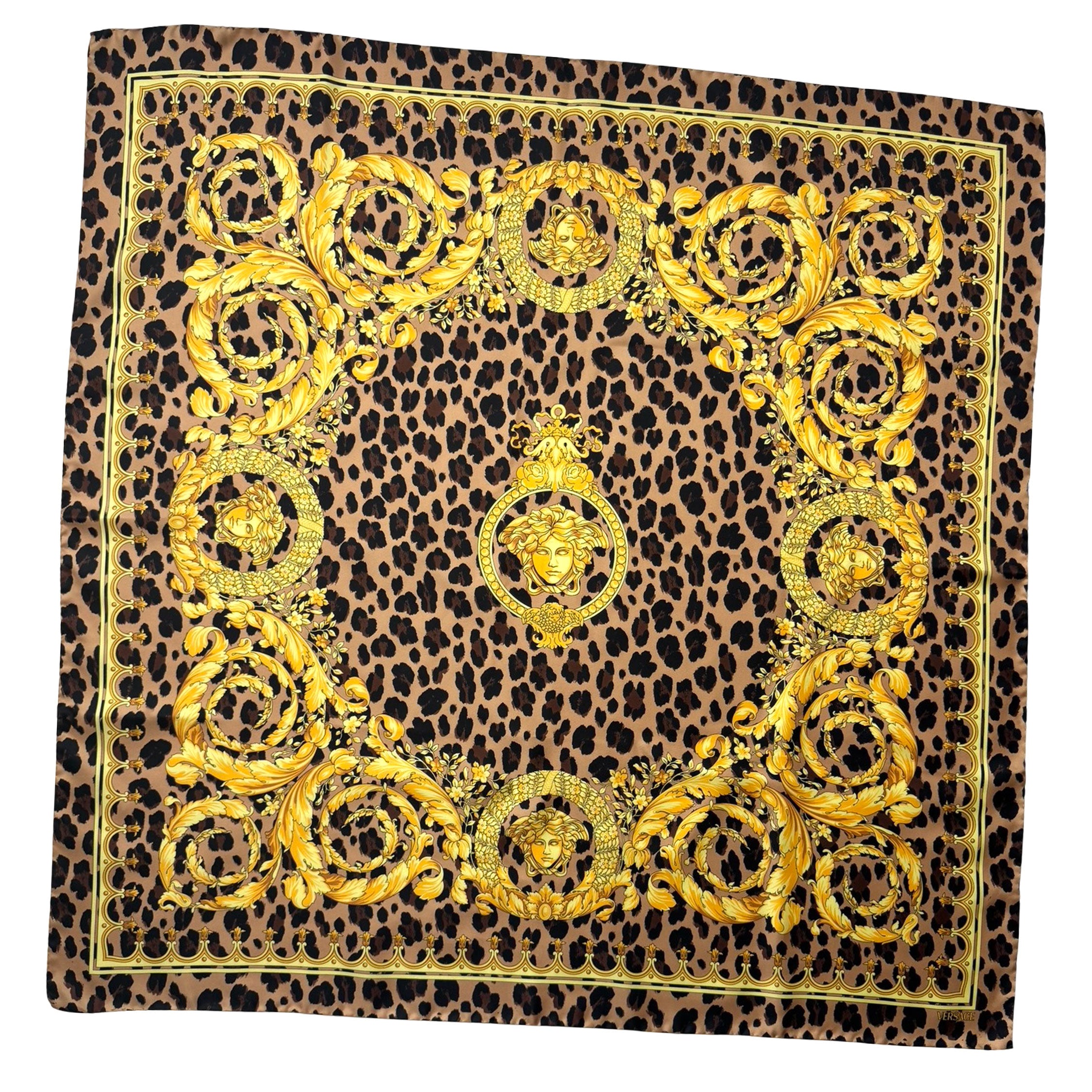 Category: 2026spring, 2026summer, animal print, baroque, brown, gold, large square, medusa, scarf, signature, silk, square, twill, Versace, woman