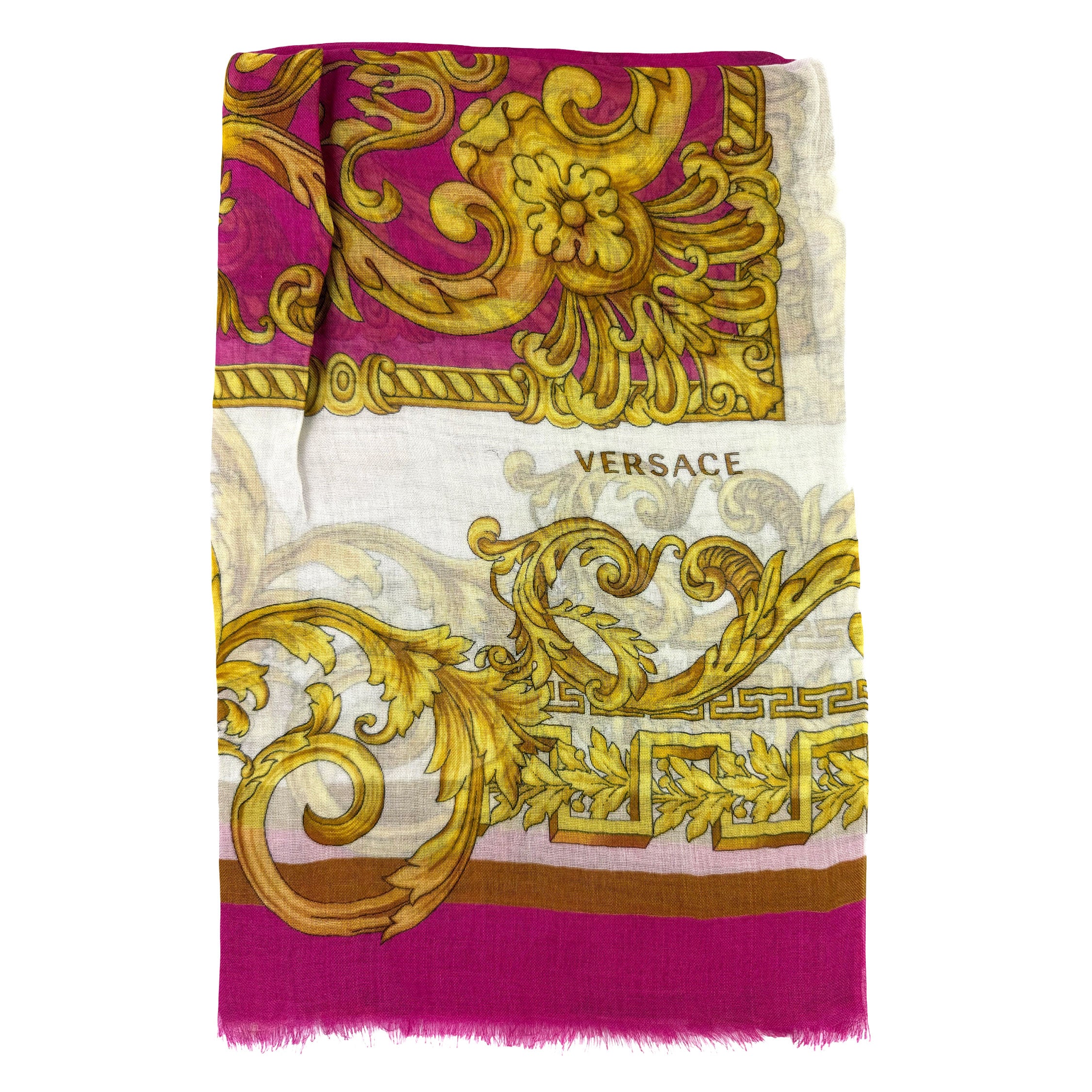 Category: 2026spring, 2026summer, 300-up, barocco, extra large square, gift, gold, hot pink, pink, scarf, shawl, signature, silk, square, Versace, wool, wrap