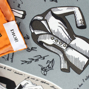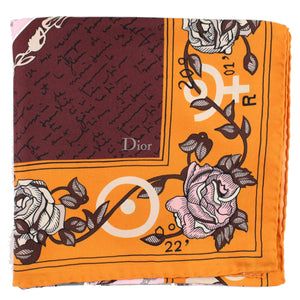 Last one! Women collection: Authentic Dior scarf with signature novelty design with orange roses on the border, twill silk, hand stitched edges, made in Italy. Authentic Dior women designer collection, silk women designer scarves at outlet prices.