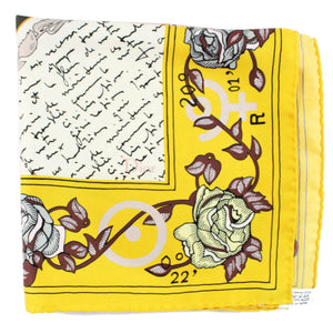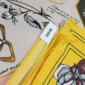 Last one! Women collection: Authentic Dior scarf with signature novelty design with roses on the yellow border, twill silk, hand stitched edges, made in Italy. Authentic Dior women designer collection, silk women designer scarves at outlet prices.