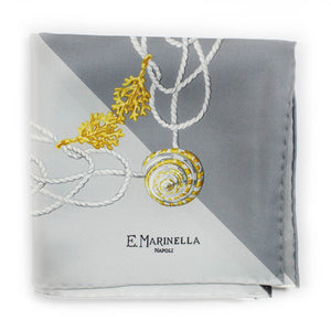 SALE - Women collection - Genuine E. Marinella scarf, beautiful gray black design, design, hand stitched border, twill silk foulard, made in Italy. Authentic E. Marinella women collection.