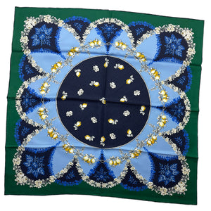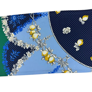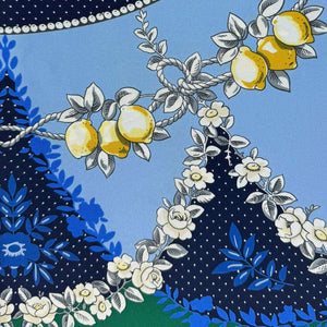 Women collection luxury scarves - Genuine E. Marinella scarf, navy blue green floral, mini lemons and navy design, hand stitched border, twill silk foulard, hand made in Italy. Authentic E. Marinella women collection.