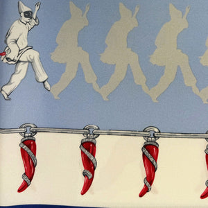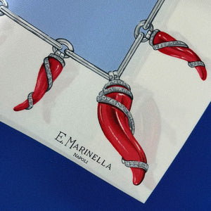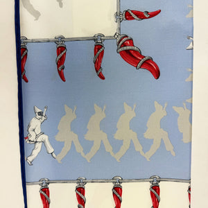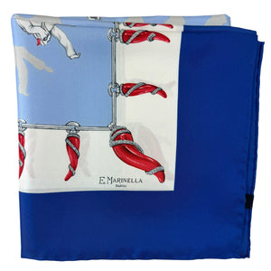 SALE - Genuine E. Marinella scarf, Royal Blue with Red Lucky Horn & Pulcinella Mask design, twill silk foulard, hand made in Italy. Authentic E. Marinella women collection. Discount women designer scarves.